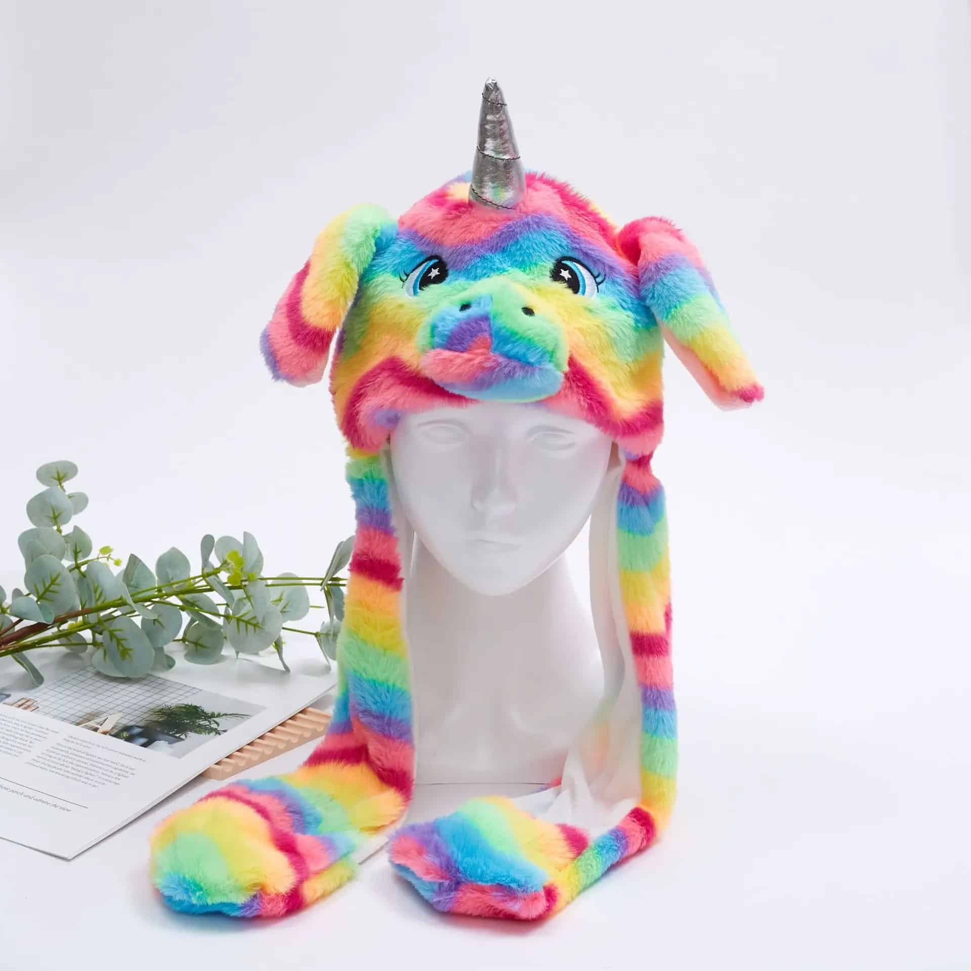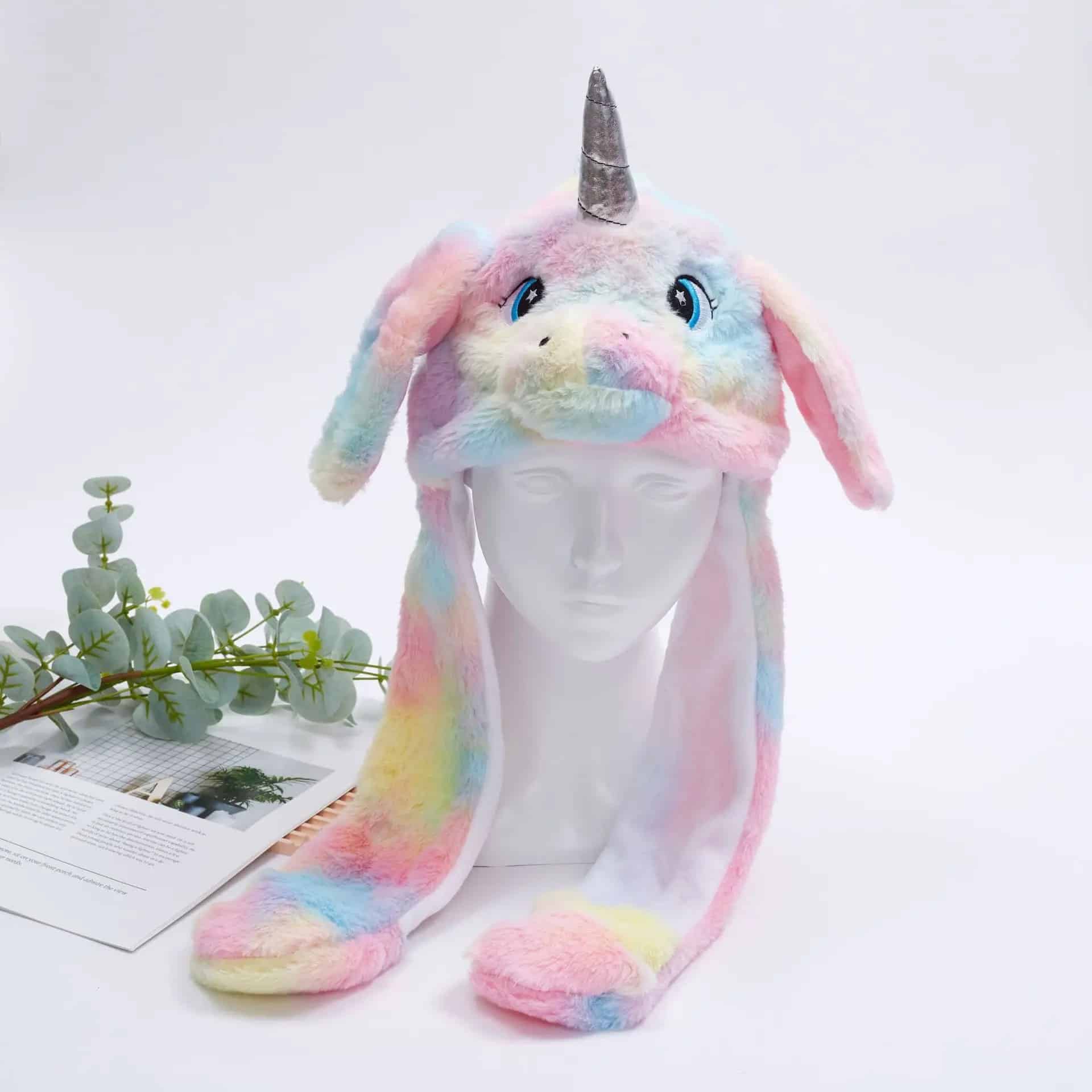 Notre bonnet licorne avec oreille qui bouge transforme chaque sortie en moment magique grâce à ses couleurs arc-en-ciel éclatantes qui mélangent le rose, le bleu, le jaune et le vert dans un dégradé féerique.