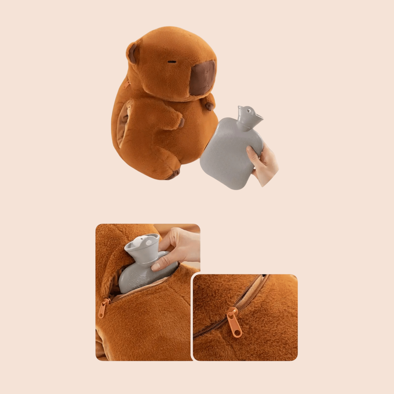 Cette adorable bouillotte Capybara arbore une silhouette ronde et dodue qui reproduit fidèlement l’apparence de ce sympathique rongeur.