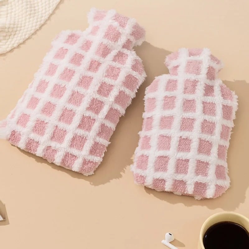 Cette bouillotte pilou rose à carreaux procure une sensation de réconfort instantané et apporte une note de tendresse à vos moments de détente.