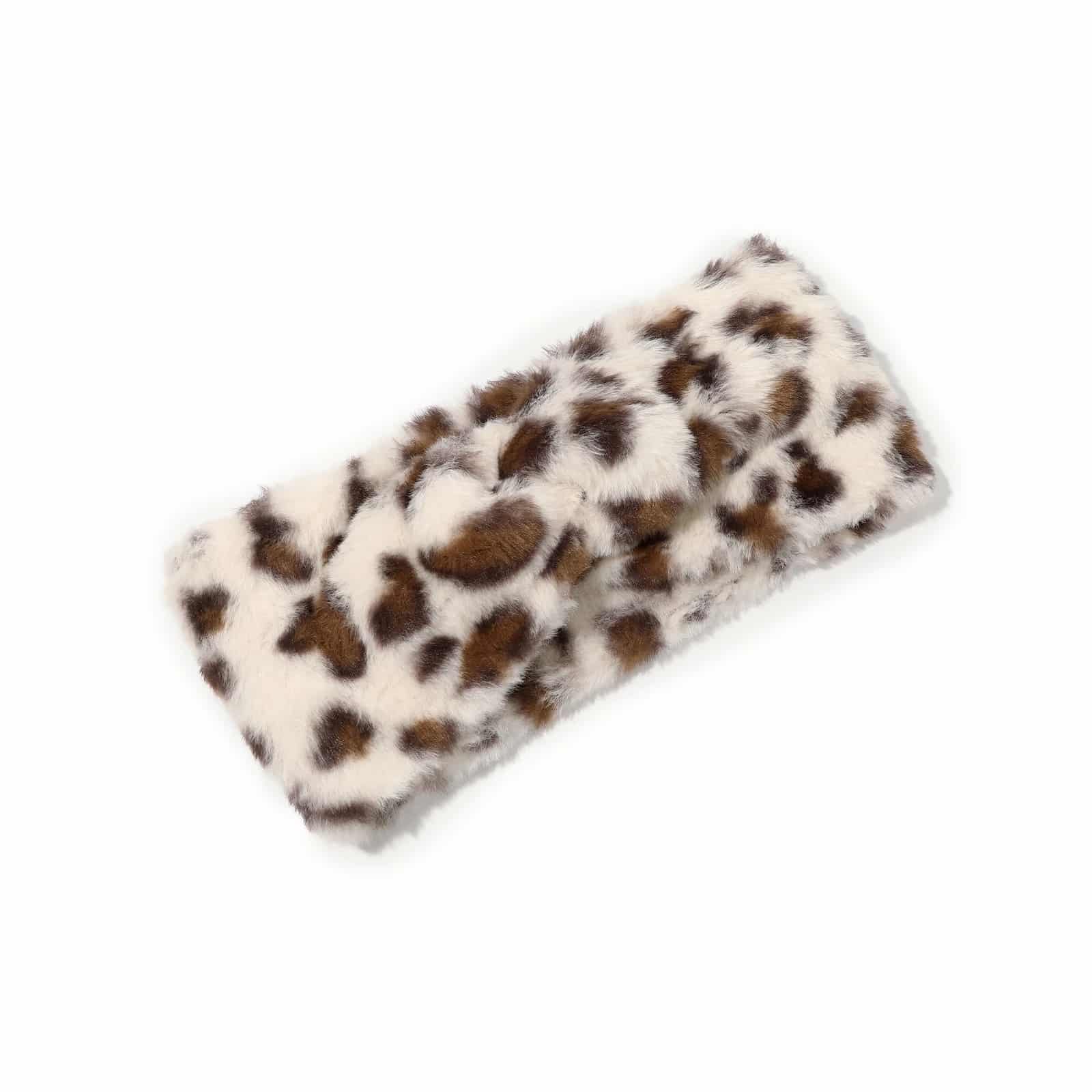 Ce bandeau présente trois motifs léopard différents : un imprimé brun foncé classique, un modèle beige rosé délicat et une version blanc cassé tachetée de brun.