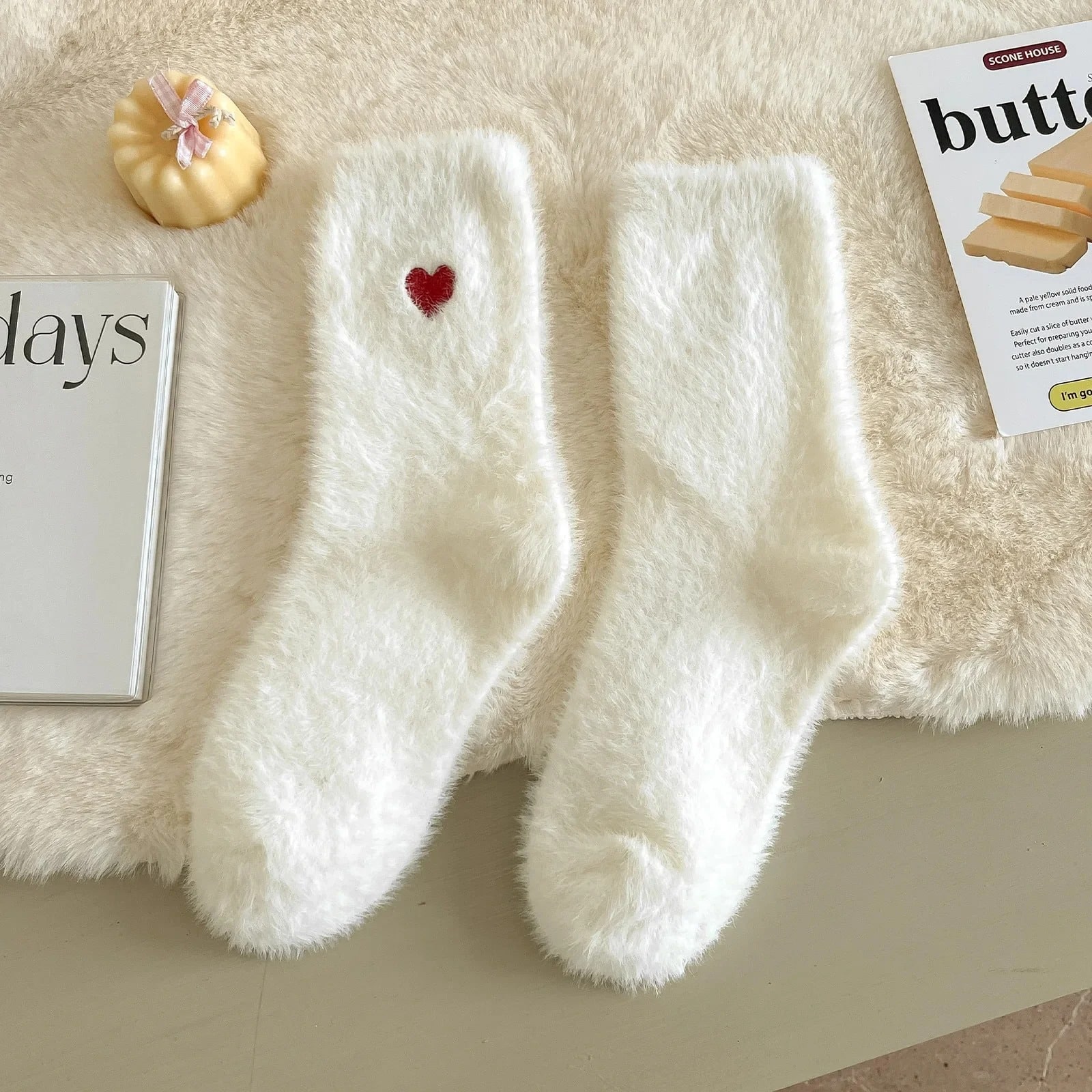 Leur aspect duveteux se marie parfaitement avec l’élégance du motif cœur, créant un équilibre entre confort et style.