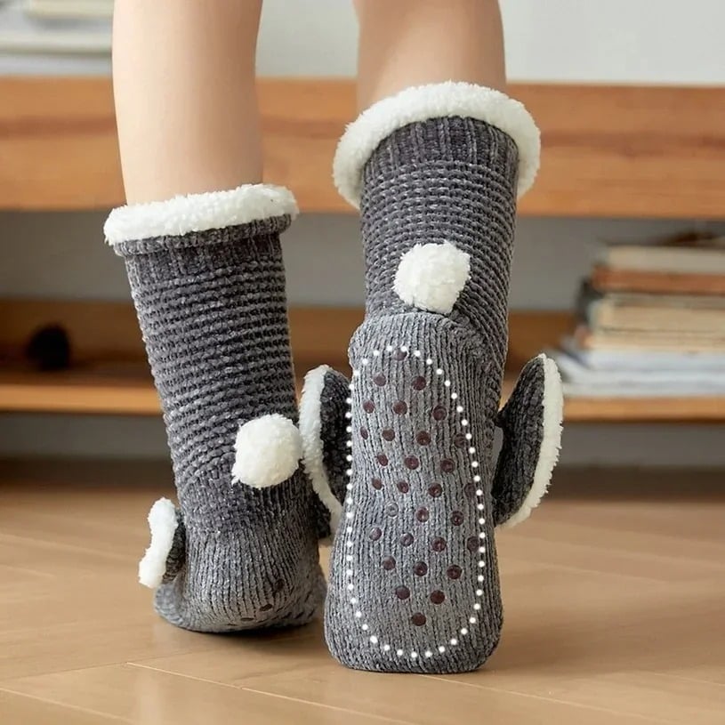 Nos chaussettes femmes fourrées lapin transforment vos pieds en adorables petits lapins grâce à leurs oreilles dressées et leur museau brodé qui leur donnent une bouille craquante.