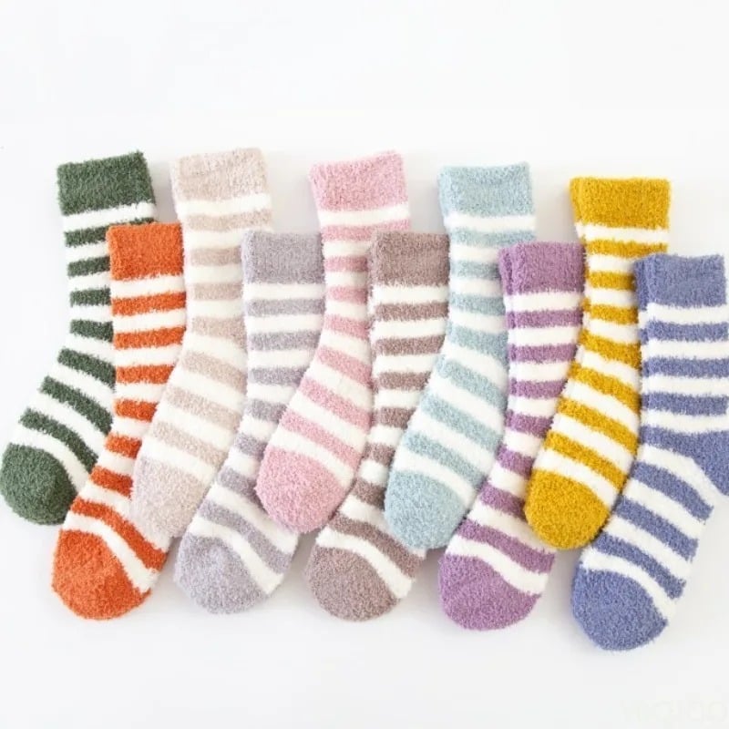 Nos chaussettes rayées femme moumoute se distinguent par leur aspect duveteux qui rappelle la texture d’un peluche.