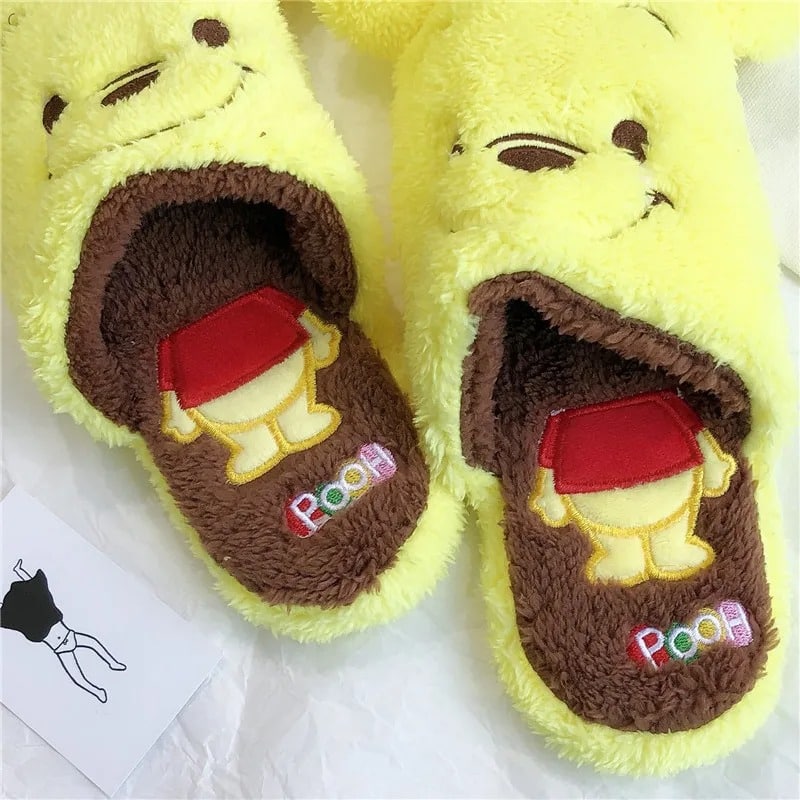 La semelle intérieure est décorée avec le corps de Winnie l’ourson, en rouge et jaune, ajoutant un élément de surprise et de plaisir chaque fois que vous glissez vos pieds dans les chaussons.