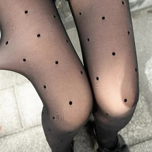 Notre collant pilou à pois présente un motif délicat de petits pois répartis sur toute sa surface, créant un style à la fois classique et fantaisie.