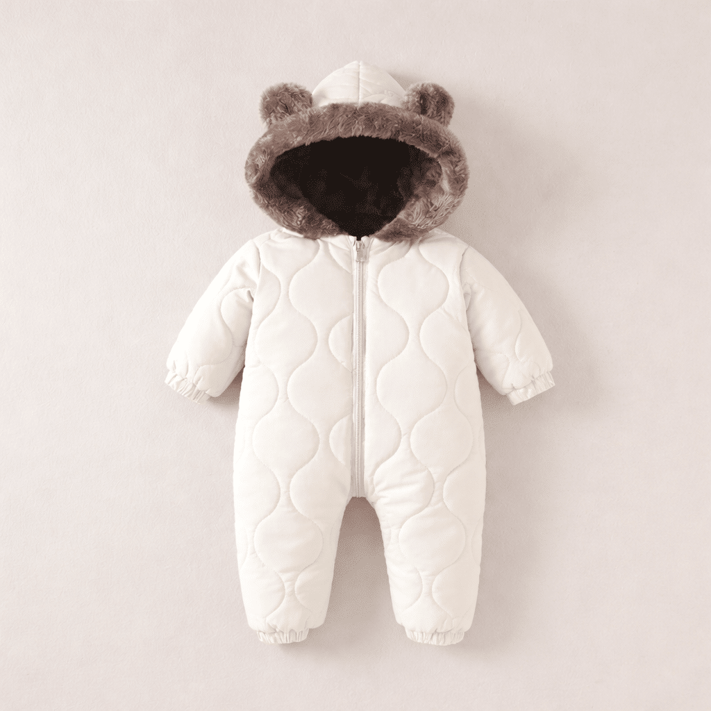 Cette tenue d’hiver présente une couleur blanc crème apaisante qui convient parfaitement aux tout-petits.
