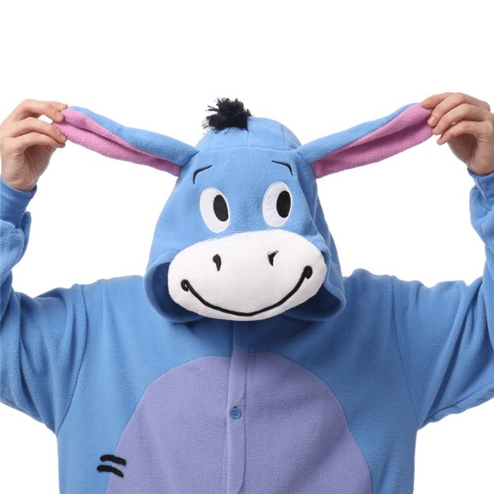 Notre combinaison bourriquet homme vous transforme instantanément en l’adorable âne gris et violet de Winnie l’Ourson.