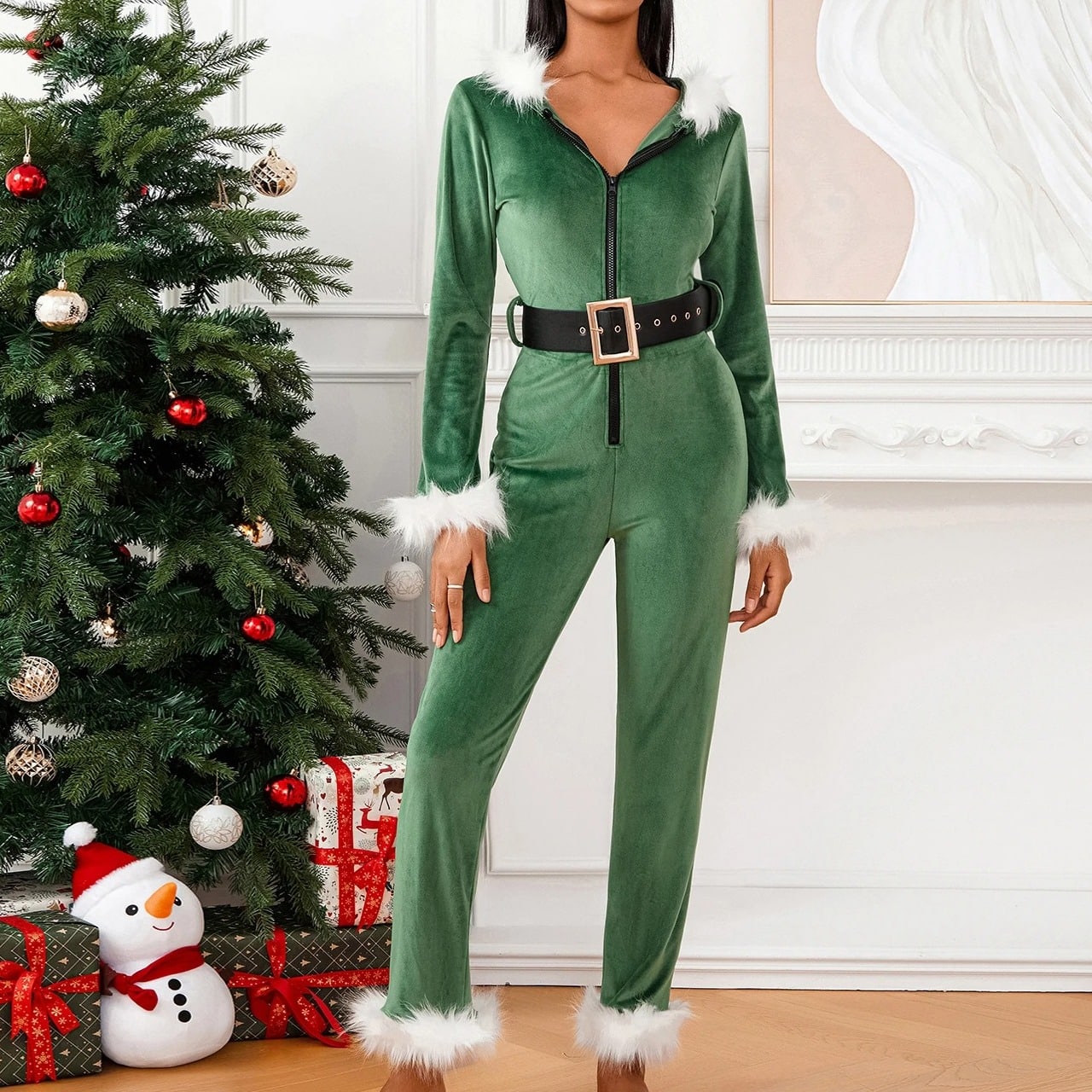 Notre combinaison lutin femme vous transforme en véritable assistante du Père Noël avec son design festif et chaleureux.