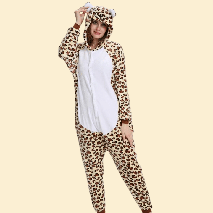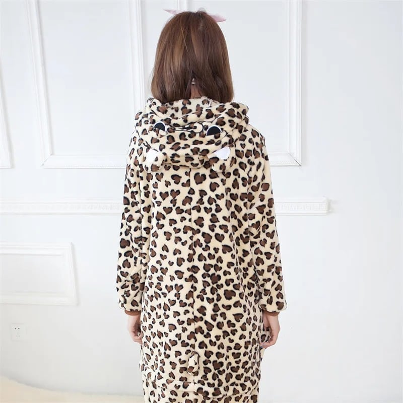 Notre combinaison pyjama leopard femme vous enveloppe dans un cocon de douceur avec son motif léopard élégant qui apporte une touche sauvage à vos soirées détente.