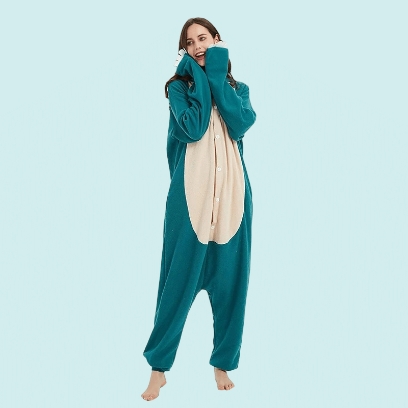 Notre combinaison Ronflex vous transforme en ce Pokémon adorable avec son design fidèle et sa couleur bleu-vert caractéristique.