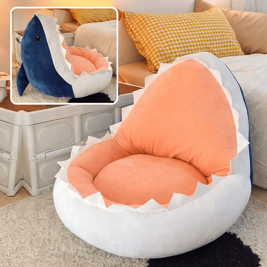 Notre coussin pouf requin enfant combine astucieusement confort et amusement avec sa forme unique en requin aux tons blanc et corail.