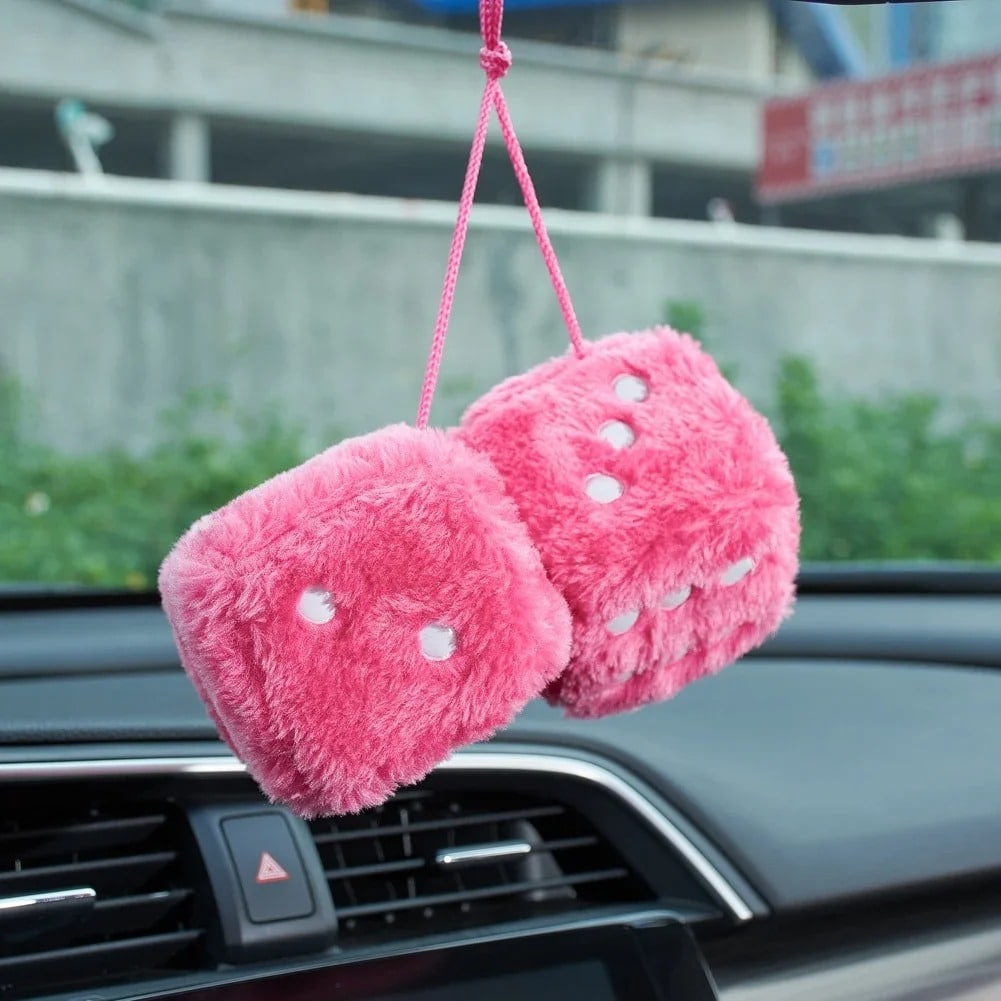 Nos dés fourrure voiture transforment votre habitacle en un cocon de douceur avec leur magnifique fourrure rose éclatante.