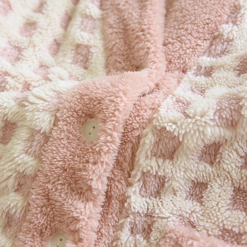 La veste présente un col châle généreux qui enveloppe délicatement le cou et les épaules pour un confort optimal pendant vos moments de détente.