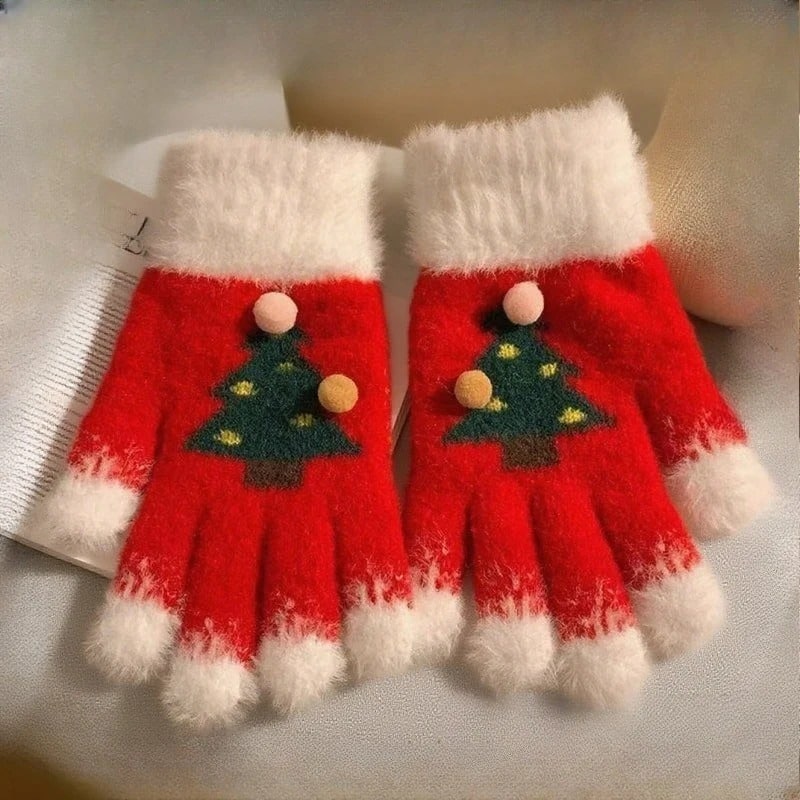 Ces gants sapin de Noel tout doux se distinguent par leur couleur rouge vive qui contraste harmonieusement avec les motifs verts et les finitions blanches immaculées.