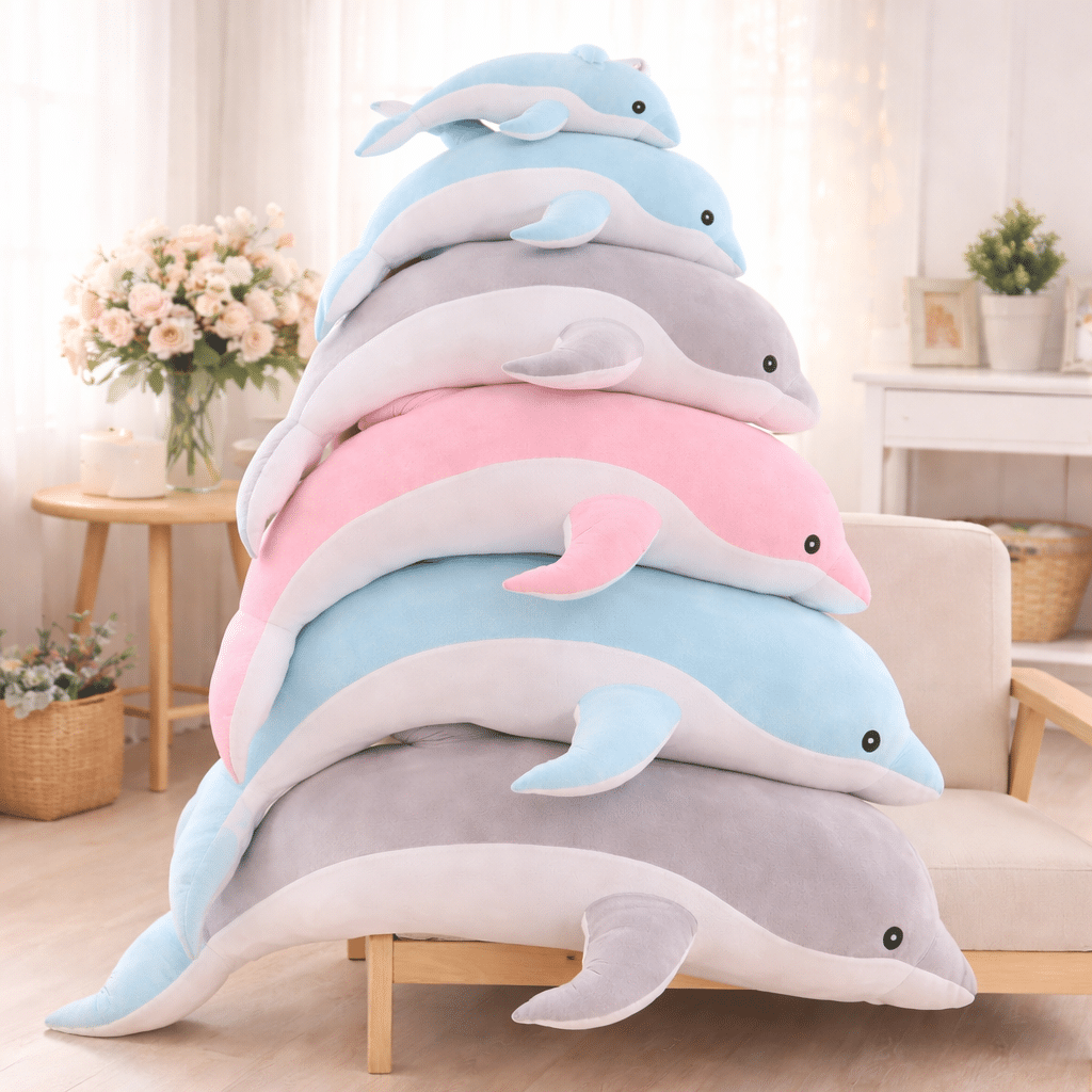 Notre grosse peluche dauphin toute douce apporte une présence réconfortante dans votre quotidien avec sa taille généreuse qui invite aux câlins.