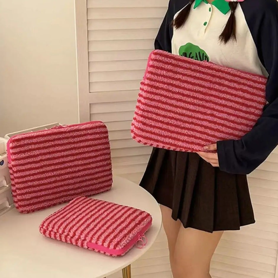 Cette housse offre une protection douce et moelleuse pour votre ordinateur portable grâce à sa texture pelucheuse qui enveloppe délicatement l’appareil.