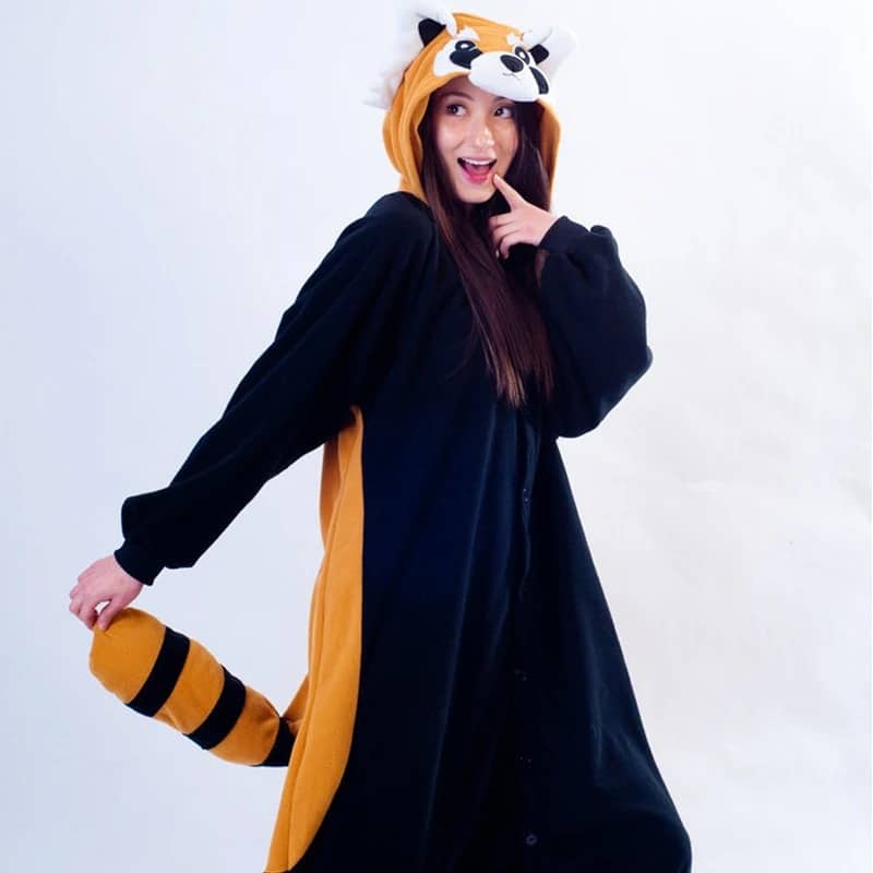 Notre Kigurumi panda roux pilou transforme vos soirées détente en moments de pur bonheur grâce à sa capuche ornée d’oreilles rondes et de détails faciaux adorables qui reproduent fidèlement les traits du panda roux.
