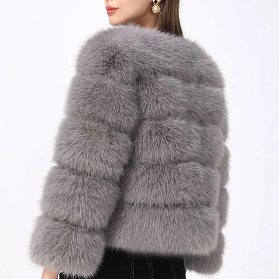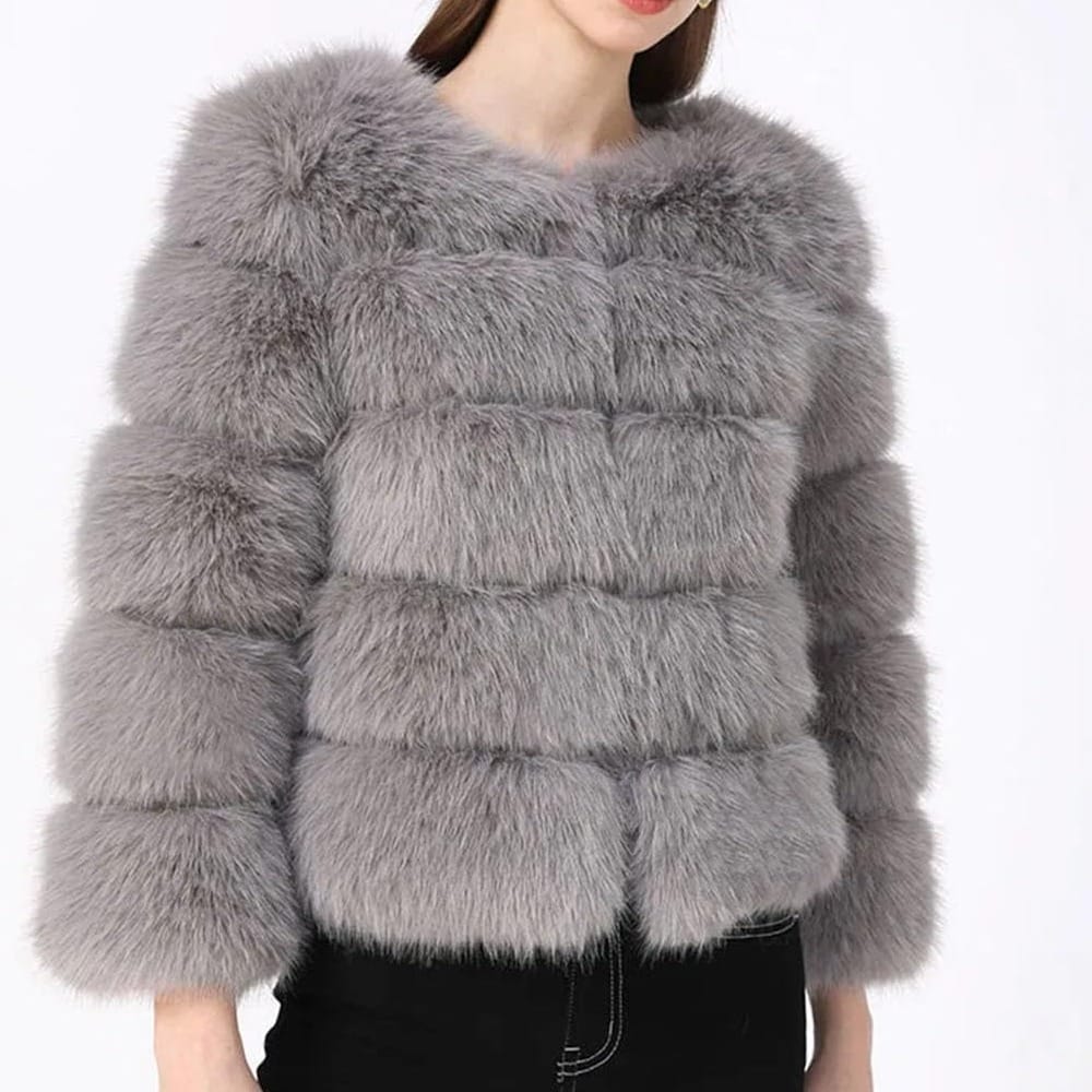 Soyez le premier à laisser votre avis sur “Manteau fausse fourrure femme gris​”
