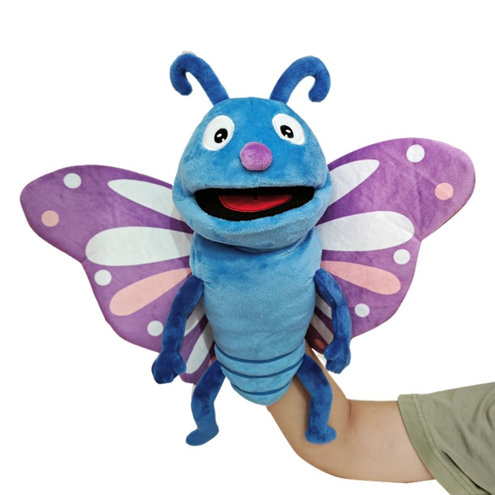 Cette marionnette papillon peluche fonctionne comme une marionnette à main classique. Il suffit de glisser la main à l’intérieur pour animer le personnage et lui donner vie.