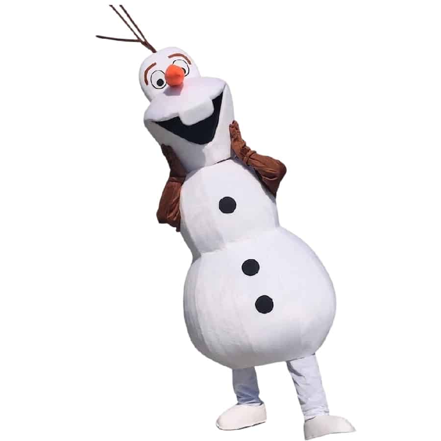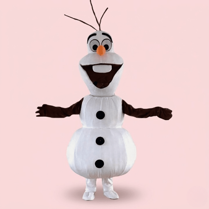 Les détails soignés comme sa carotte orange qui lui sert de nez et ses boutons noirs parfaitement alignés rendent cette mascotte Olaf particulièrement réussie.