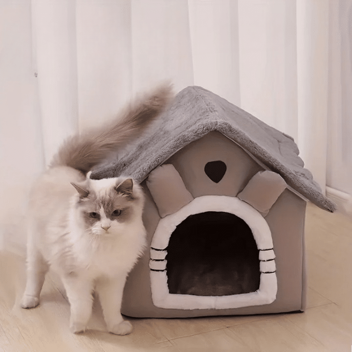 La niche en peluche est en forme de petite maison, ce qui donne à votre chien ou votre chat un vrai coin rien qu’à lui.