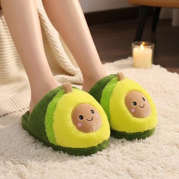 Nos pantoufles avocat transforment vos pieds en adorables fruits tropicaux grâce à leur design original et leur forme parfaitement reproduite.