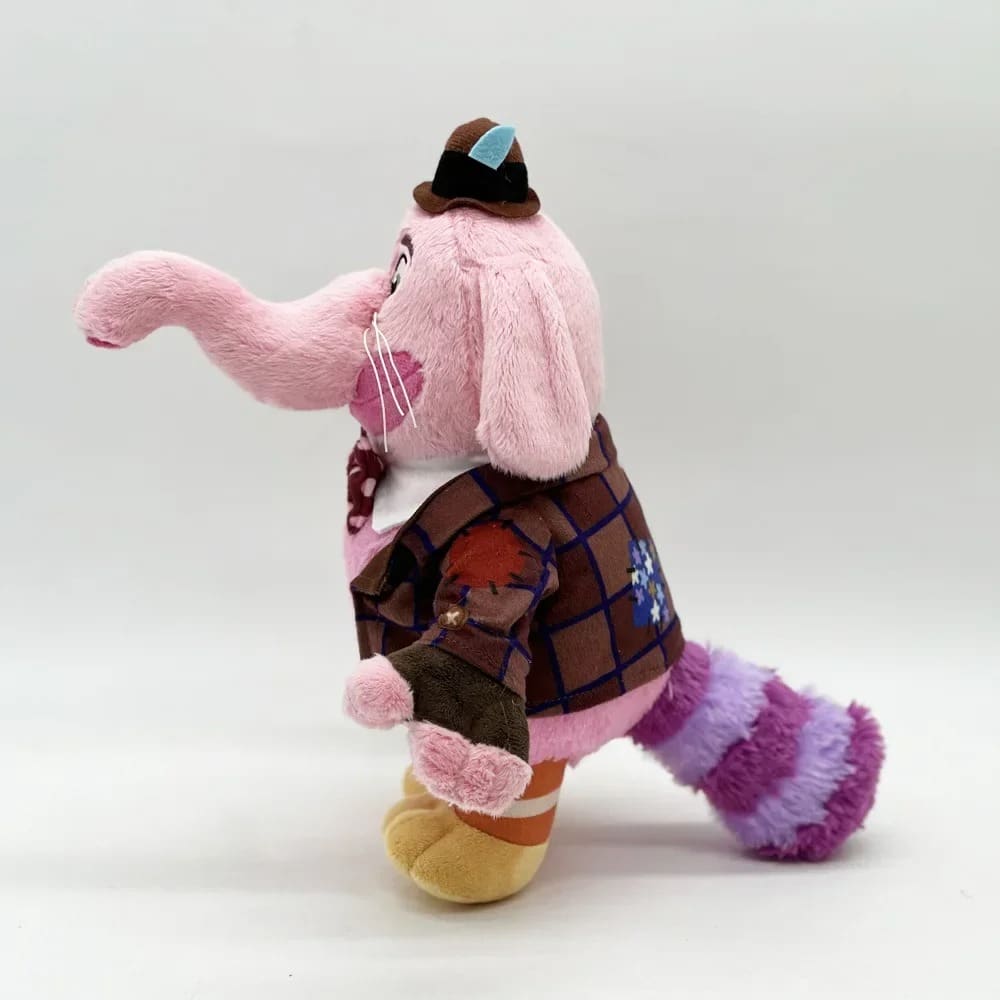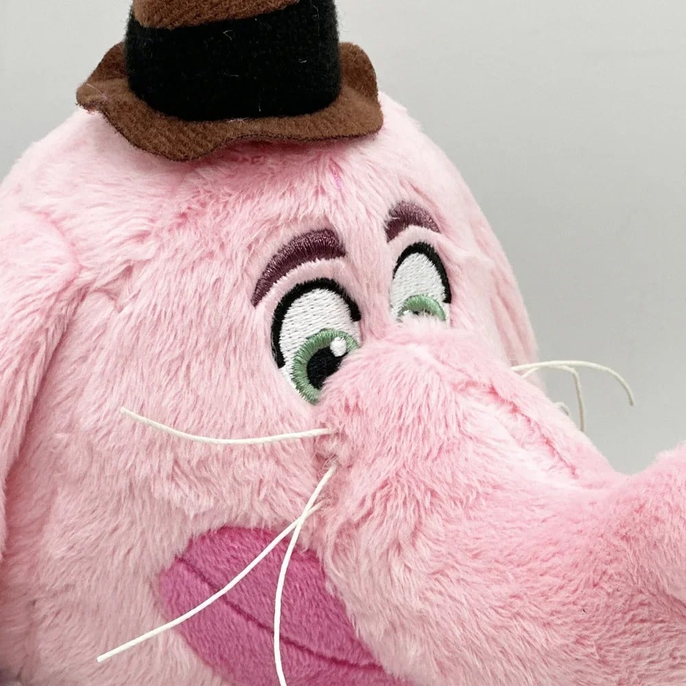 La peluche bing bong arbore un petit chapeau sur la tête qui ajoute une touche d’élégance à son apparence.