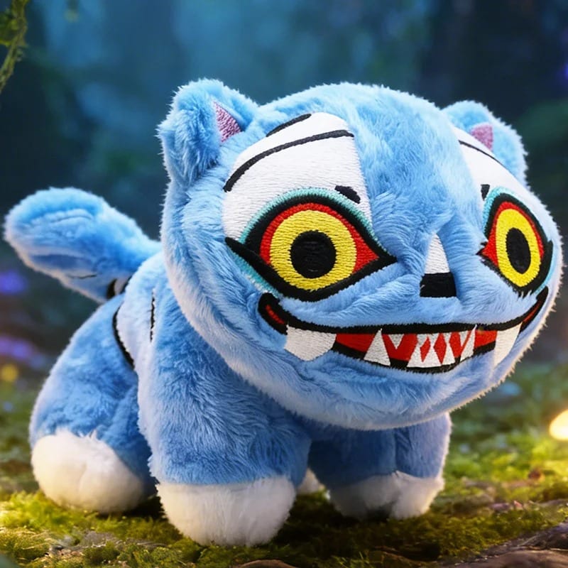 Cette adorable créature bleue présente une forme compacte et arrondie parfaite pour les câlins et la décoration.