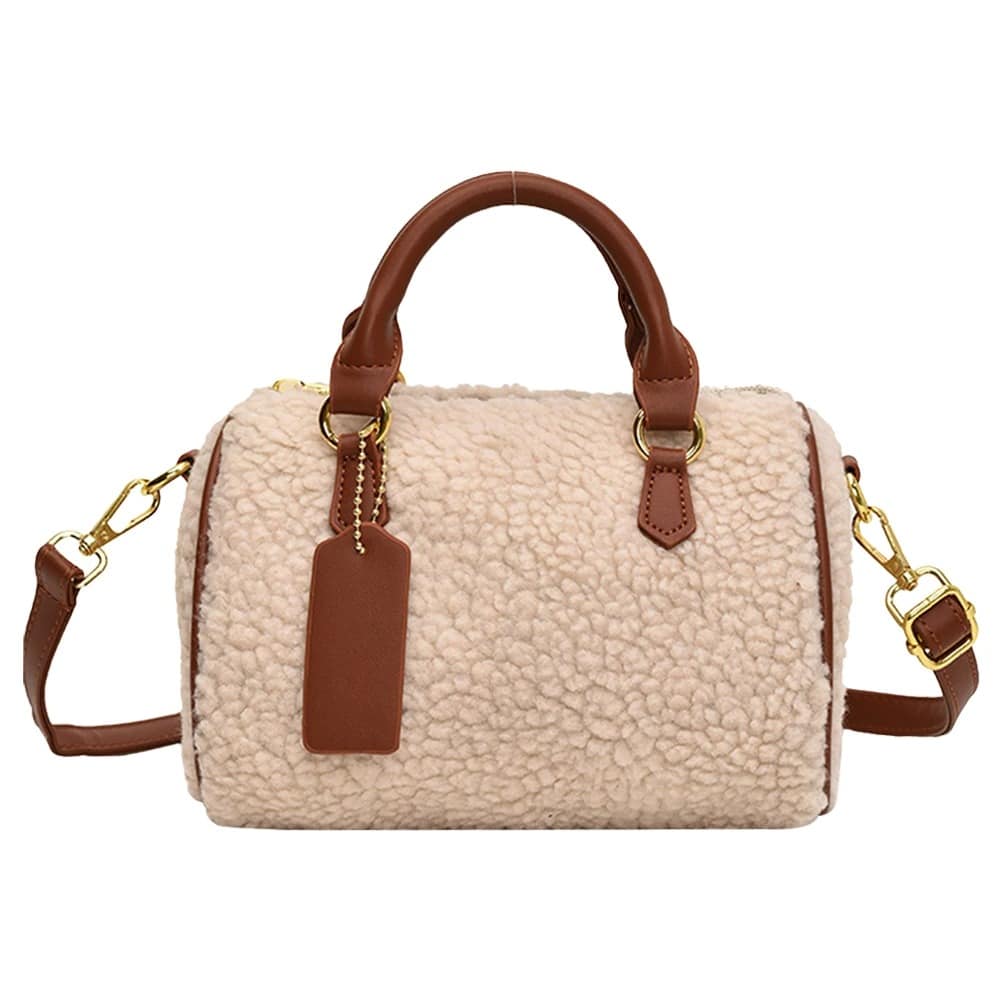 Notre petit sac moumoute affiche un style élégant avec ses anses arrondies et sa forme structurée qui rappelle les sacs de ville classiques.
