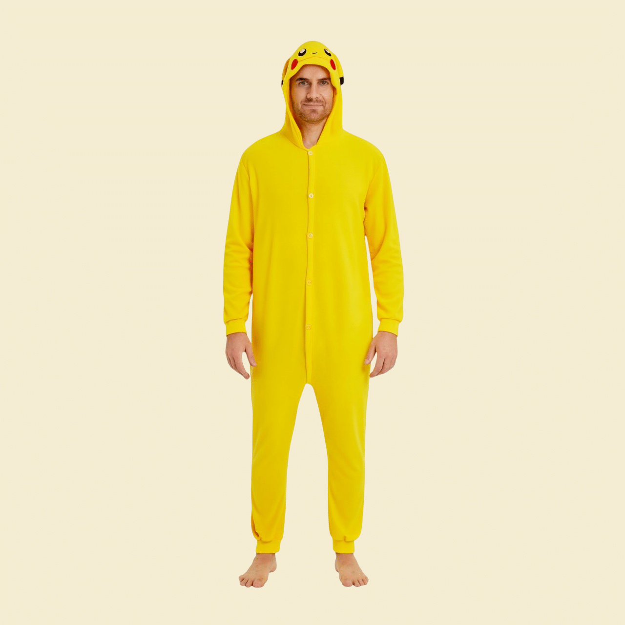 Notre pilou pilou homme pikachu vous transforme en votre Pokémon préféré avec son design intégral jaune vif qui reproduit fidèlement l’apparence du célèbre personnage.