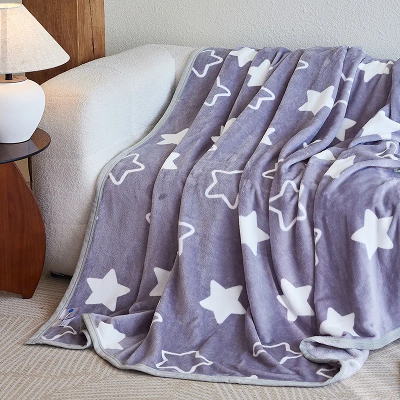Notre plaid couverture étoile bleu apporte une touche décorative charmante à votre canapé ou votre lit.