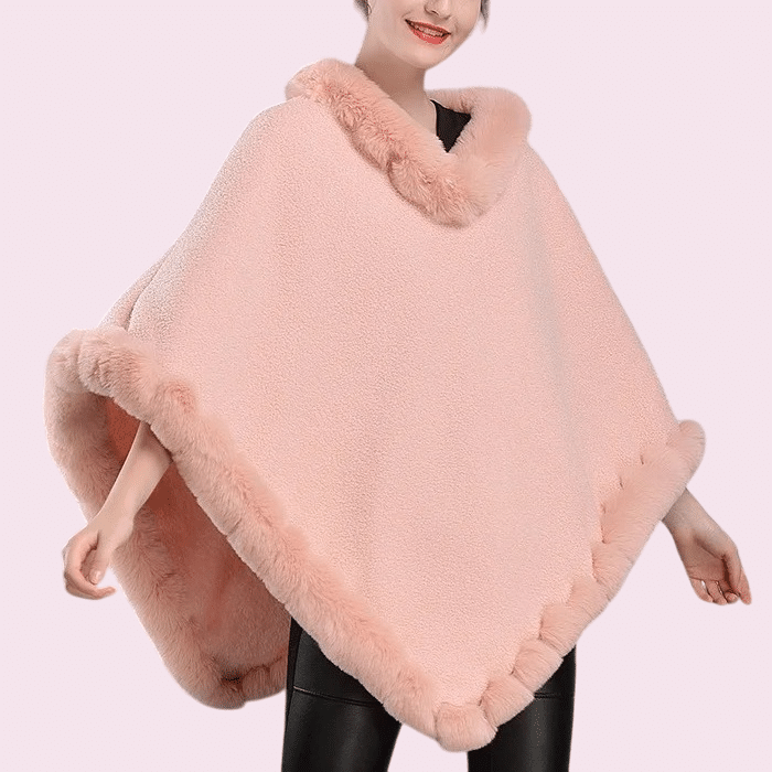 Notre poncho femme pilou chaud se distingue par sa magnifique teinte rose poudré qui apporte une touche de douceur à votre garde-robe hivernale.