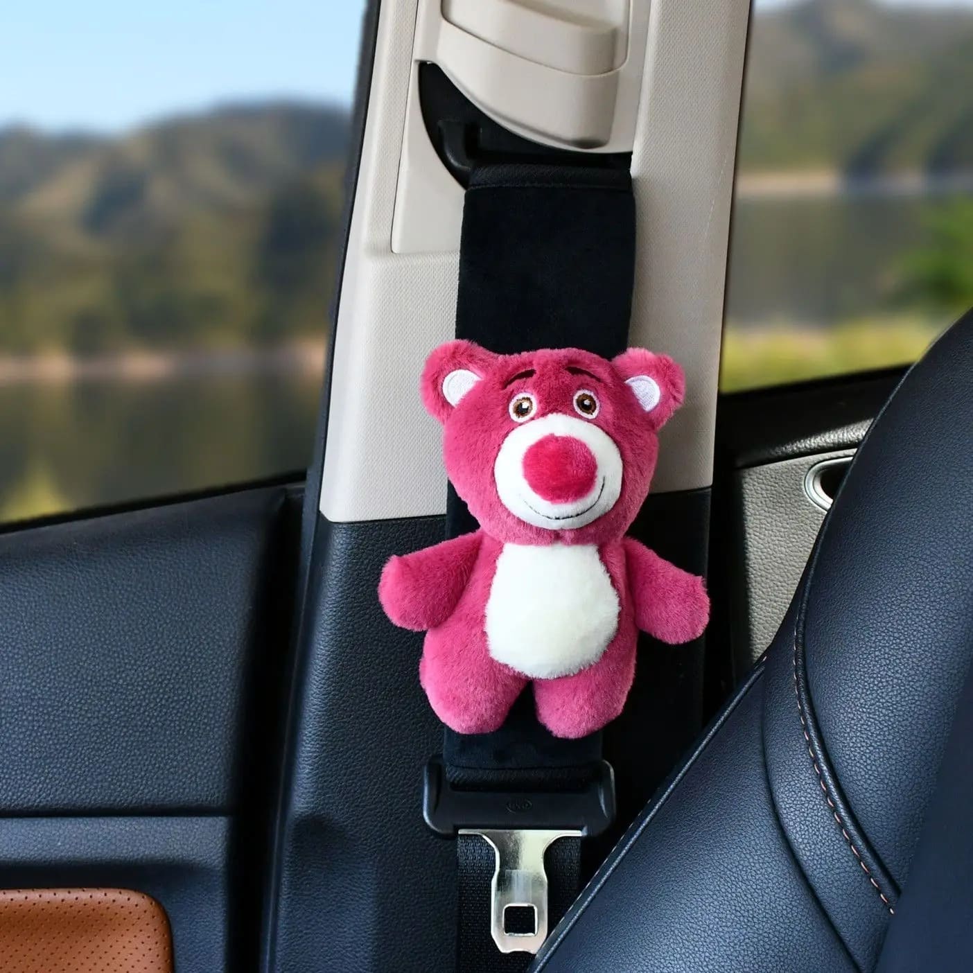 Notre protège ceinture Lotso transforme vos trajets en voiture en moments plus doux grâce à son adorable ourson rose qui apporte une touche de tendresse à votre habitacle.