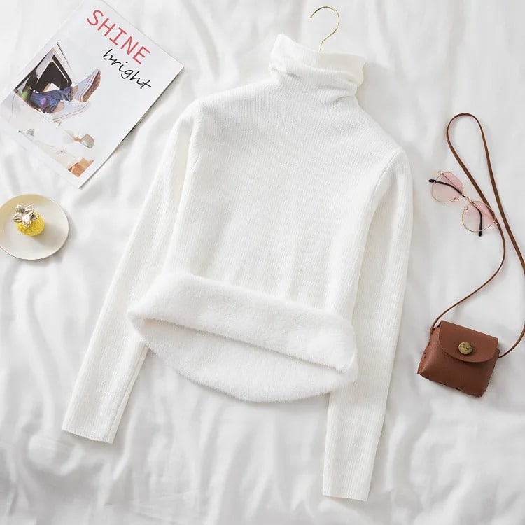 Notre pull femme fourrée pilou se distingue par sa coupe élégante à col roulé qui apporte une touche raffinée à votre garde-robe hivernale.