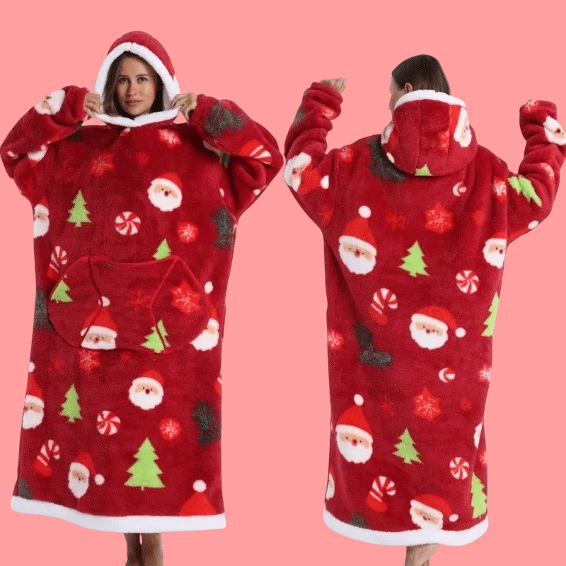 Avec ses 130 cm de longueur sans compter la capuche, le pull plaid noël devient une véritable couverture portable qui vous suit partout dans la maison.
