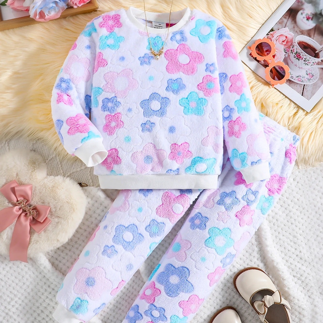 Le design fleuri aux tons pastel mélange harmonieusement le rose tendre, le bleu ciel et le violet doux pour créer un ensemble féminin et joyeux.