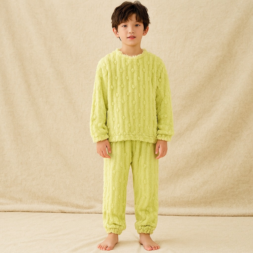 Le pull présente un motif torsadé élégant qui apporte une touche raffinée à cette tenue de nuit. Sa coupe ample et confortable permet à votre enfant de bouger librement pendant son sommeil.