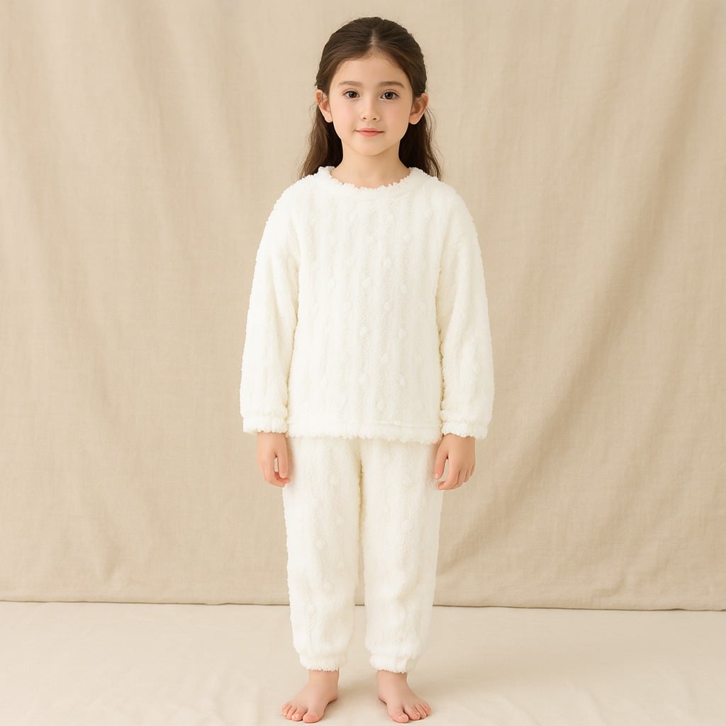 Ce magnifique ensemble se compose d’un haut à manches longues et d’un pantalon assorti, tous deux confectionnés dans une matière pilou pilou ultra moelleuse.
