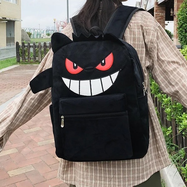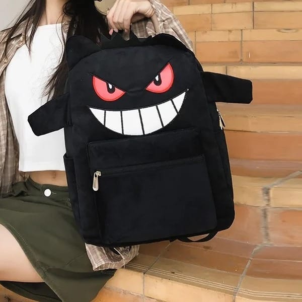 Les yeux rouges perçants et le sourire malicieux blanc donnent à ce sac un caractère unique et amusant qui plaira aux amateurs de style original.