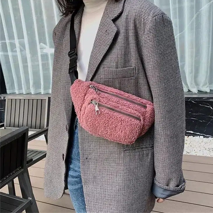 Notre sac banane pilou, en moumoute élégante, est une merveille de douceur et de fonctionnalité. Avec ses deux compartiments pratiques et ses fermetures éclair solides, il est parfait pour garder vos trésors essentiels à portée de main. Sa ceinture noire réglable assure un ajustement parfait. Disponible dans des couleurs variées – beige, rose, bleu, marron, noir – il ajoute une touche de style royal à votre tenue, que vous le portiez autour de la taille ou élégamment sur l’épaule.