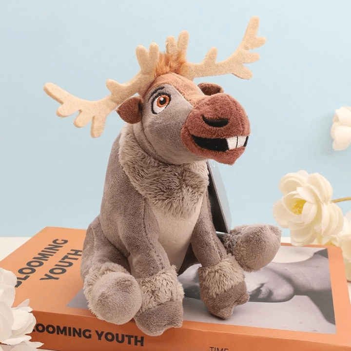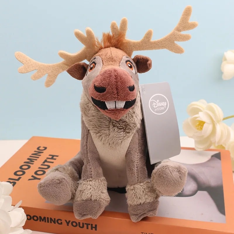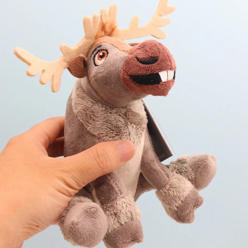Notre Sven peluche reproduit fidèlement le renne attachant du célèbre film d’animation avec ses bois oranges caractéristiques et son sourire malicieux.