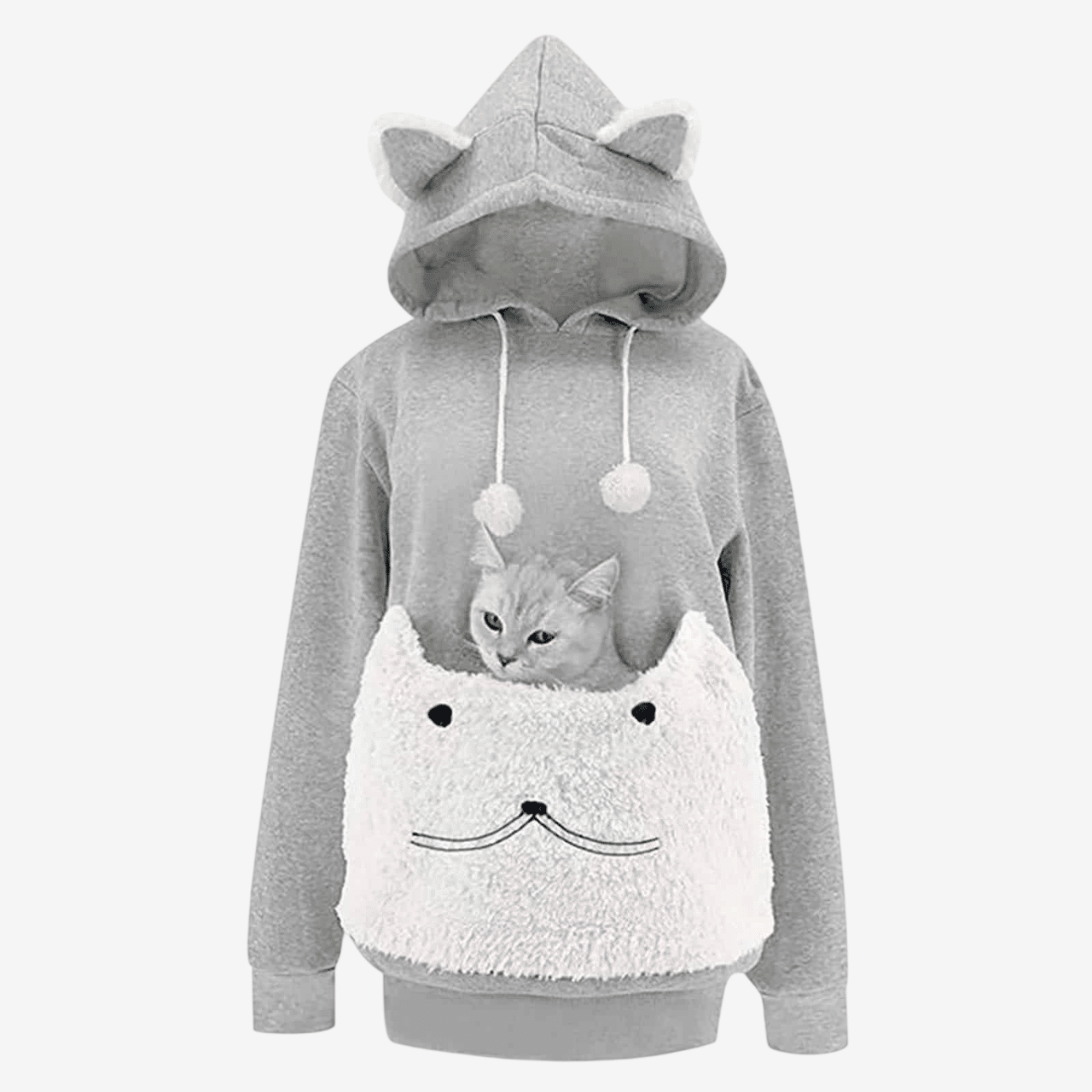 La coupe ample et décontractée garantit une liberté de mouvement totale, même avec votre chat niché dans la poche ventrale.