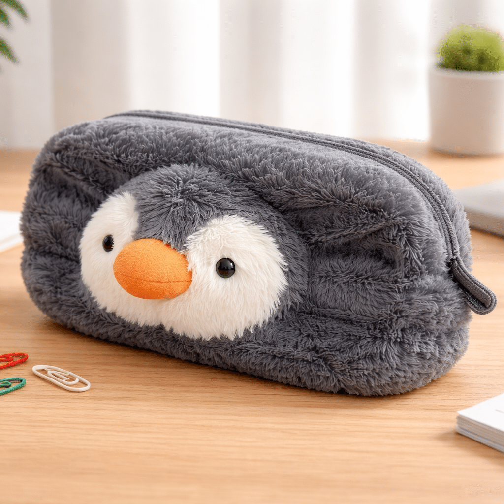 Notre trousse d’école pingouin pilou transforme le rangement des fournitures scolaires en moment de tendresse grâce à son design adorable et sa matière ultra douce.